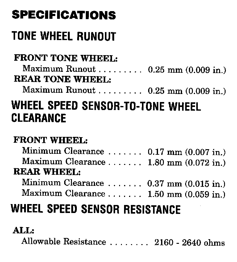 Antilock Brake System Component Specifications
