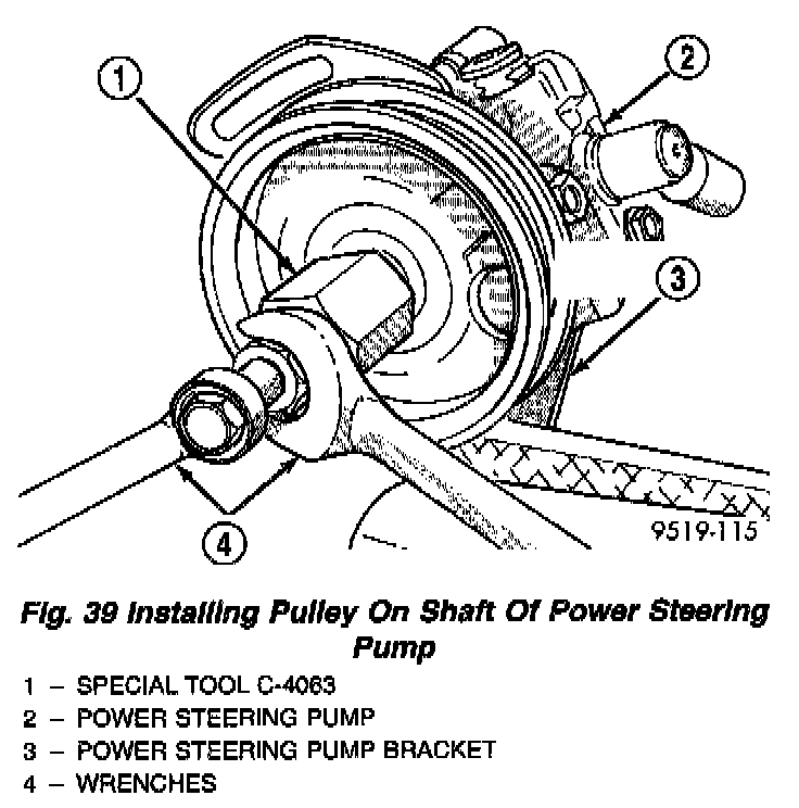 6. Remove Installer, Special Tool C-4063 from power steering pump.
