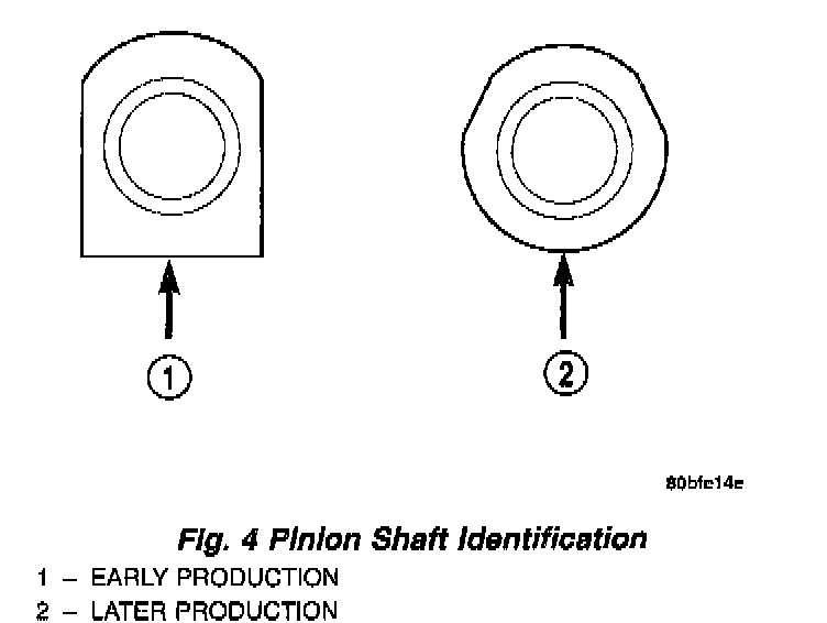 An easy way to identify an isolated steering gear is to look at the very end of the pinion shaft. Early models have 2 parallel flats on the end where the steering column intermediate shaft would bolt up. Later models have 2 flats that are at 60 degree angles to one another where the steering column intermediate shaft would bolt up.