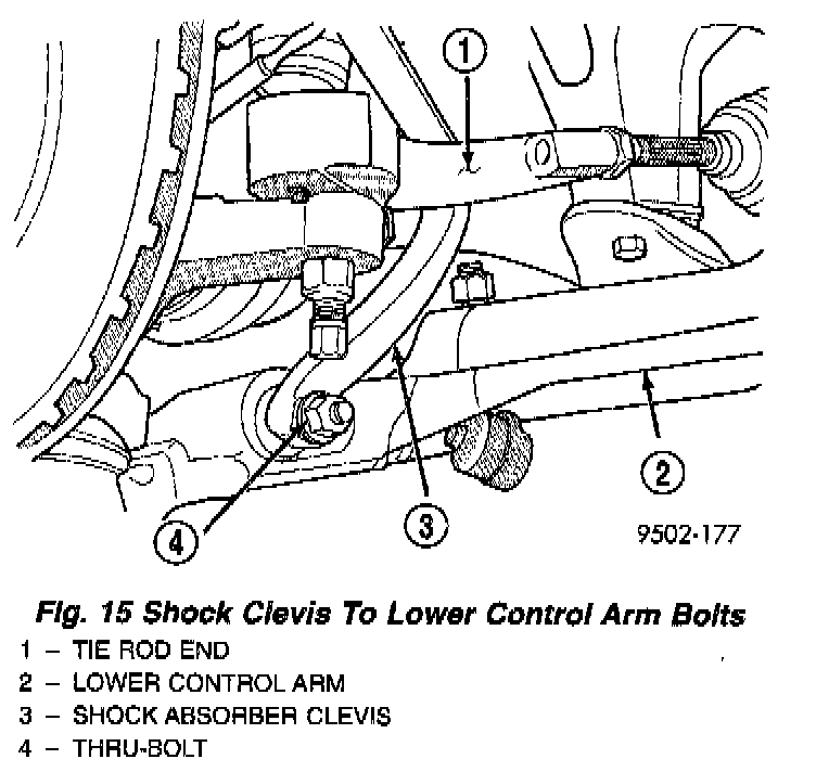 10. Loosely install the 2 shock absorber clevis to lower control arm attaching nuts and bolts.