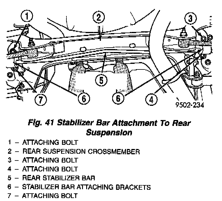 6. Remove stabilizer bar from vehicle. Stabilizer bar will come out of vehicle between the exhaust pipe and the rear suspension crossmember.