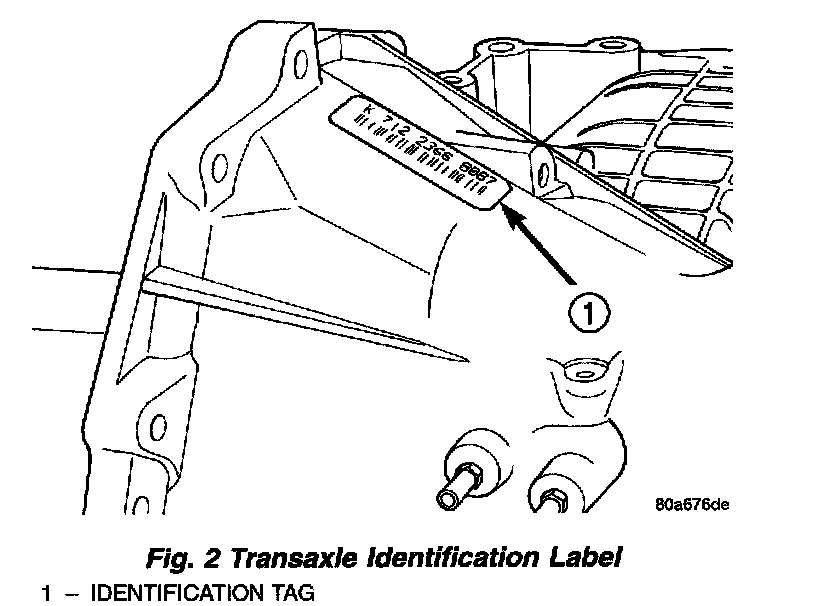 The 41TE transaxle identification code is a series of digits printed on a bar-code label that is fixed to the transaxle case as shown in (Fig. 2).
