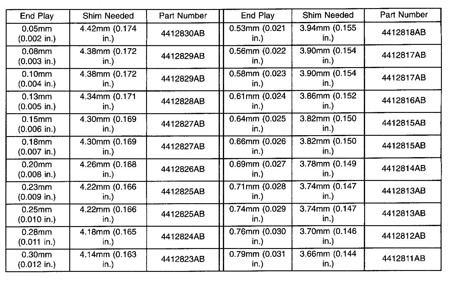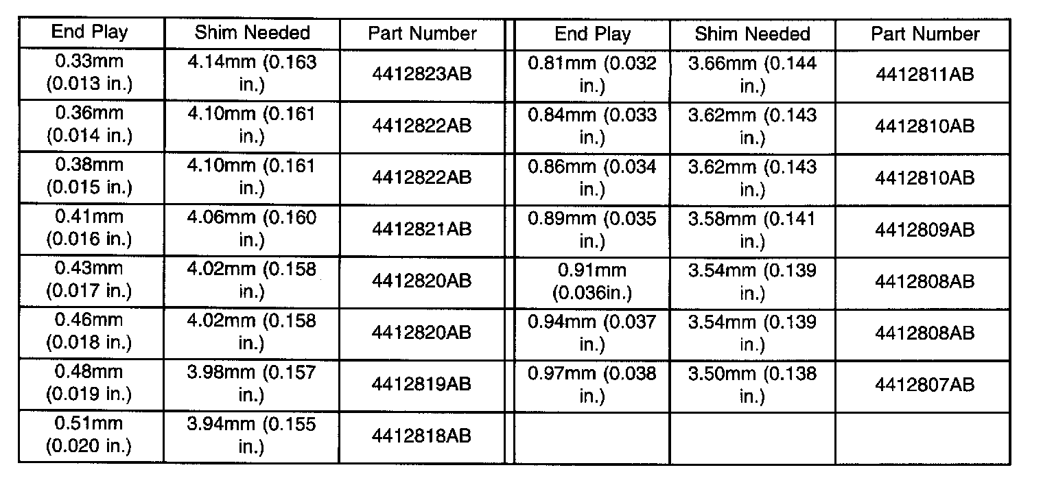 Output Gear Bearing Shim Chart (Part 2 Of 2):