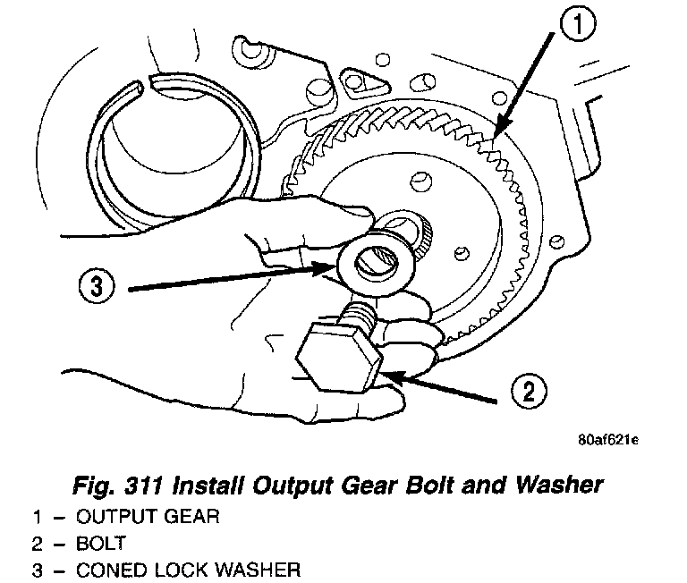 9. Install the new retaining bolt and washer (Fig. 311). Tighten to 271 Nm (200 ft. lbs.) (Fig. 312).