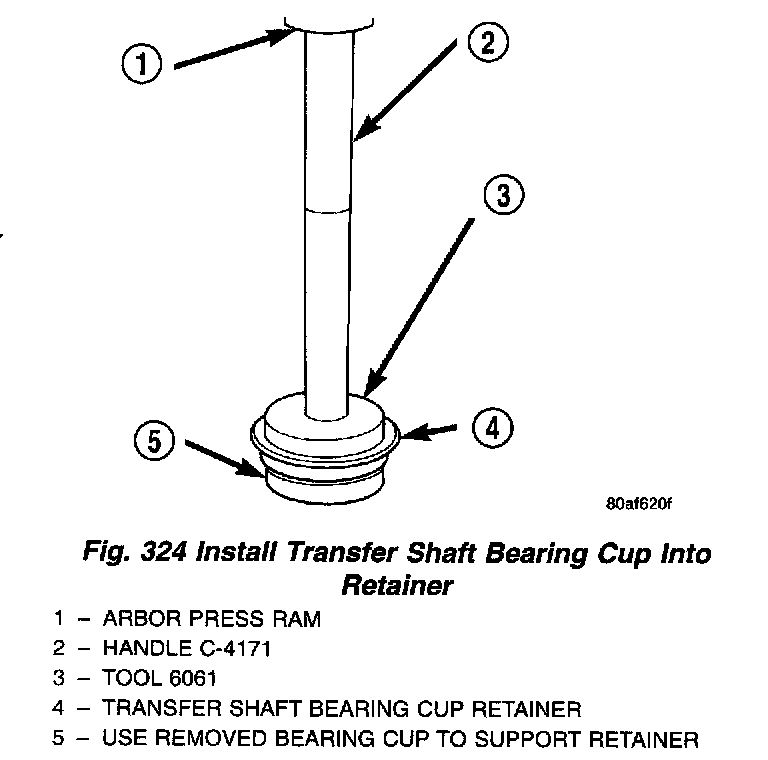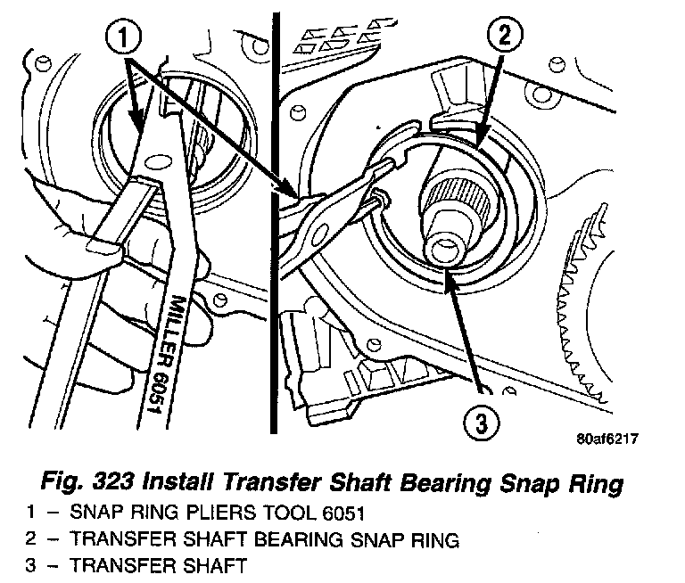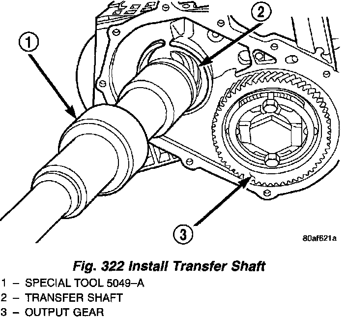 NOTE: Screw Tool 5049-A onto transfer shaft. Install transfer shaft.