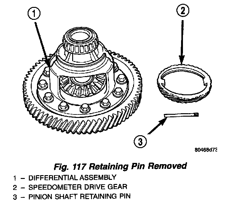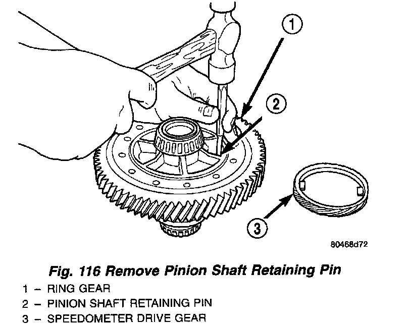 1. Remove pinion shaft retaining pin (Fig. 116) (Fig. 117).