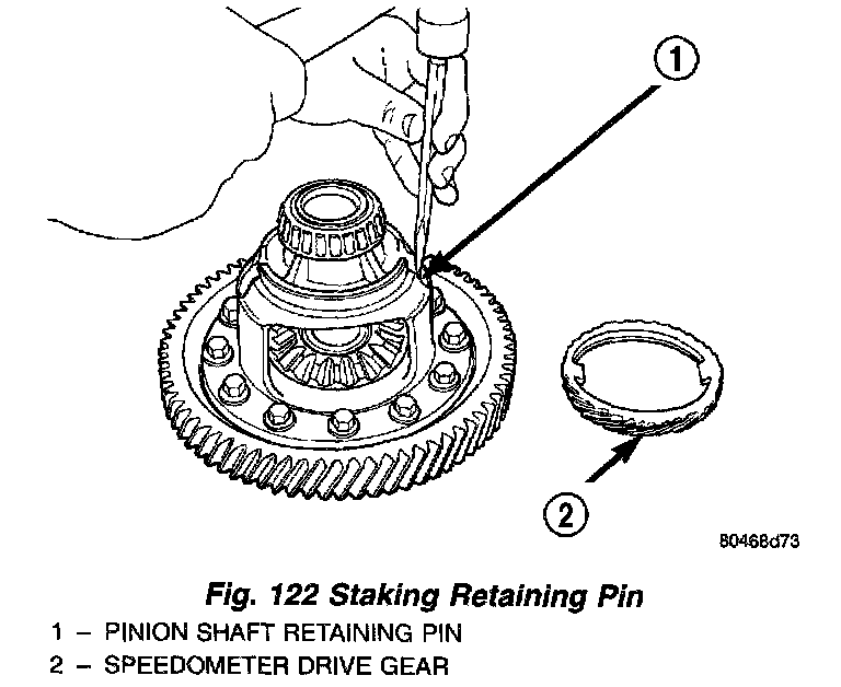 3. Stake pinion shaft retaining pin with a suitable chisel (Fig. 122).