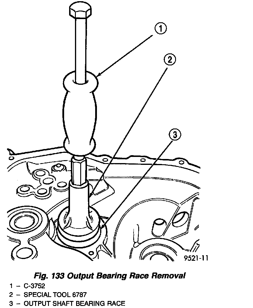 3. Install tool #6787 and slide hammer (Fig. 133). Tighten tool to output bearing race.