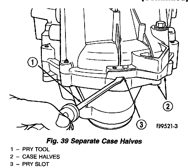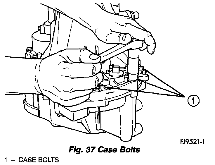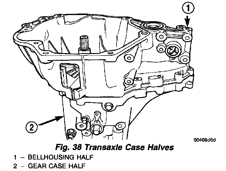 2. Remove shift levers. Remove transaxle case half bolts (Fig. 37).