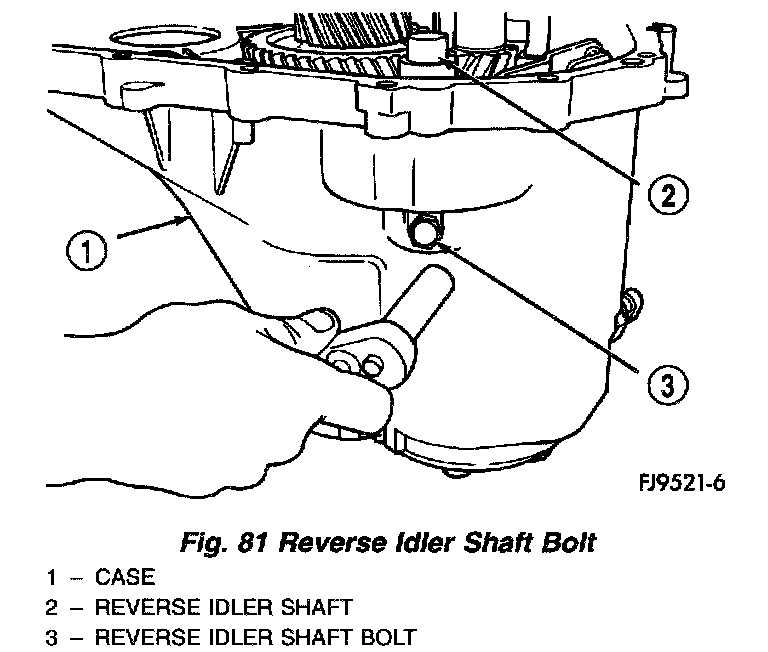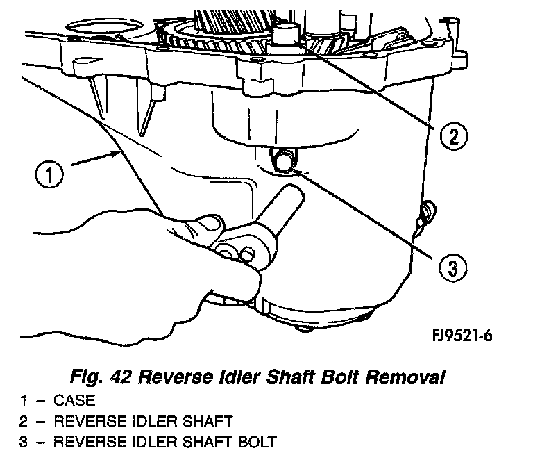 7. Remove reverse idler shaft bolt (Fig. 42).
