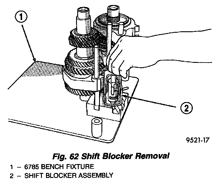 21. Remove the shift blocker assembly from the bench fixture (Fig. 62).