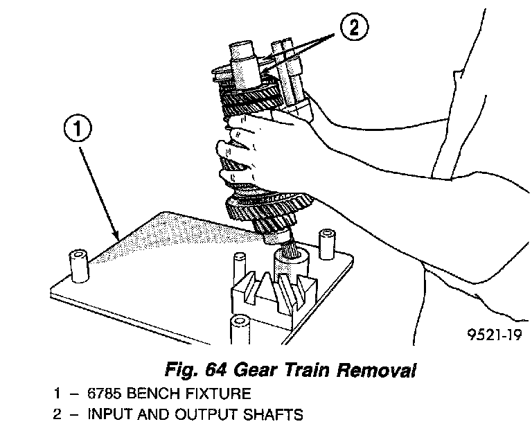 23. Remove input and output shaft assemblies from bench fixture (Fig. 64).