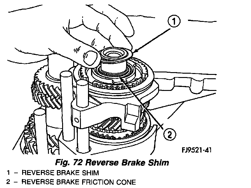 8. Install reverse brake shim (Fig. 72). Apply petroleum jelly to shim to hold in place.