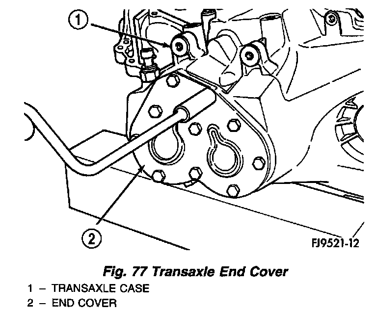 13. Apply Mopar RTV sealant to end-cover outer edge and around bolt holes. Install end-cover onto gear case. Tighten end cover bolts to 29 Nm (21 ft. lbs.) torque (Fig. 77).
