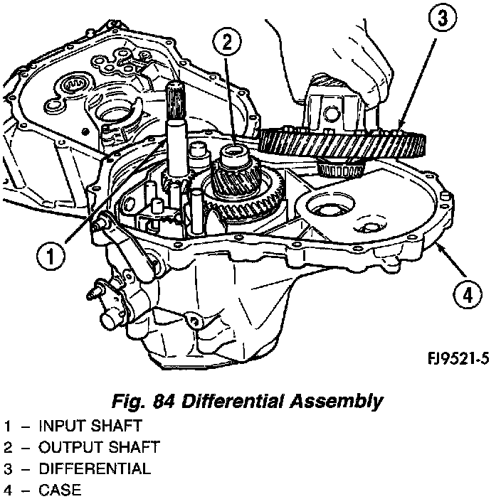 4. Oil differential bearings with Mopar type M.S.9417 Manual Transaxle Fluid. Install differential assembly in transaxle gear case. Install clutch bellhousing over gear case. Install and torque case bolts to 29 Nm (21 ft. lbs.).