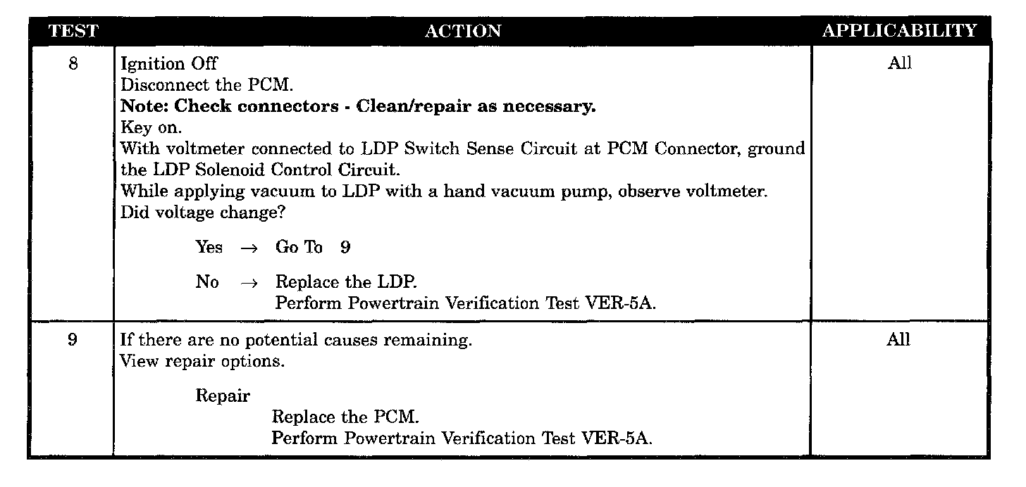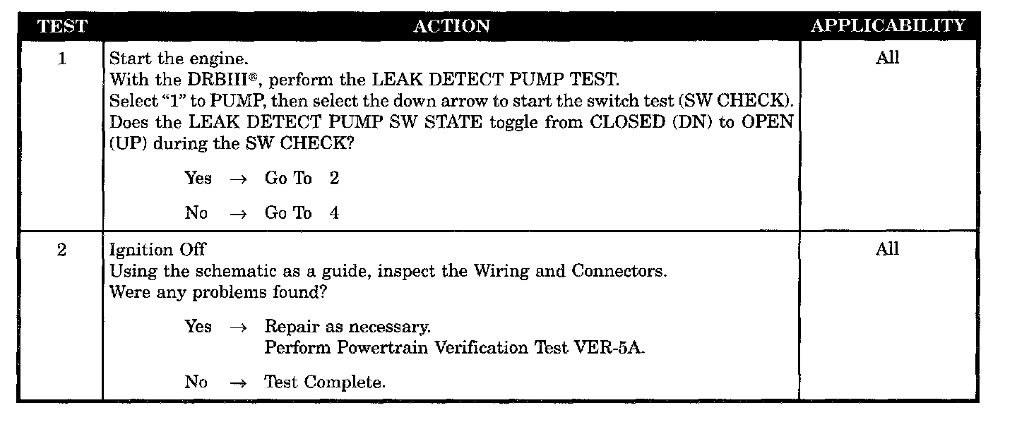 The state of the leak detection pump switch is not in its expected state at key-on (engine not running). Or, following an engine start, a change in switch state is not seen when the LDP solenoid is energized to pull the pump diaphragm to its "up" position