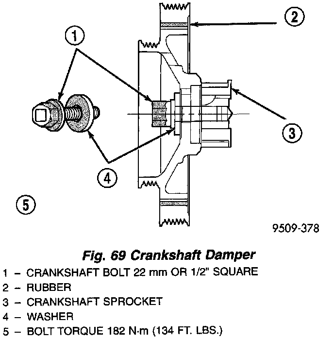 2. Install crankshaft bolt and tighten to 182 Nm (134 ft. lbs.) (Fig. 69).