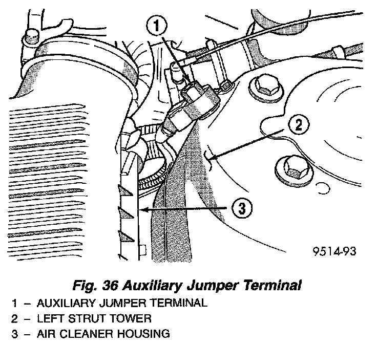 1. Disconnect negative cable from auxiliary jumper terminal (Fig. 36).