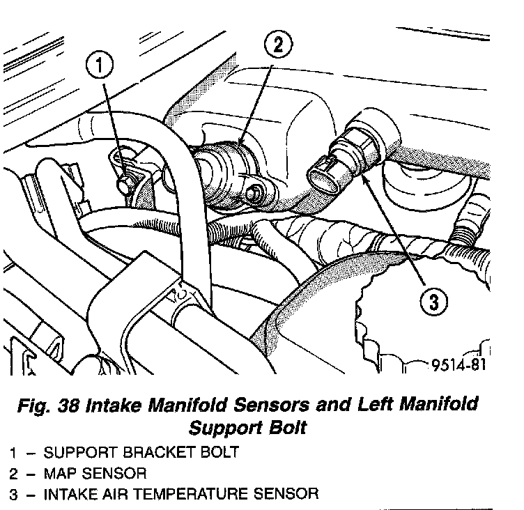 6. Disconnect connectors from MAP and intake air temperature sensors (Fig. 38).