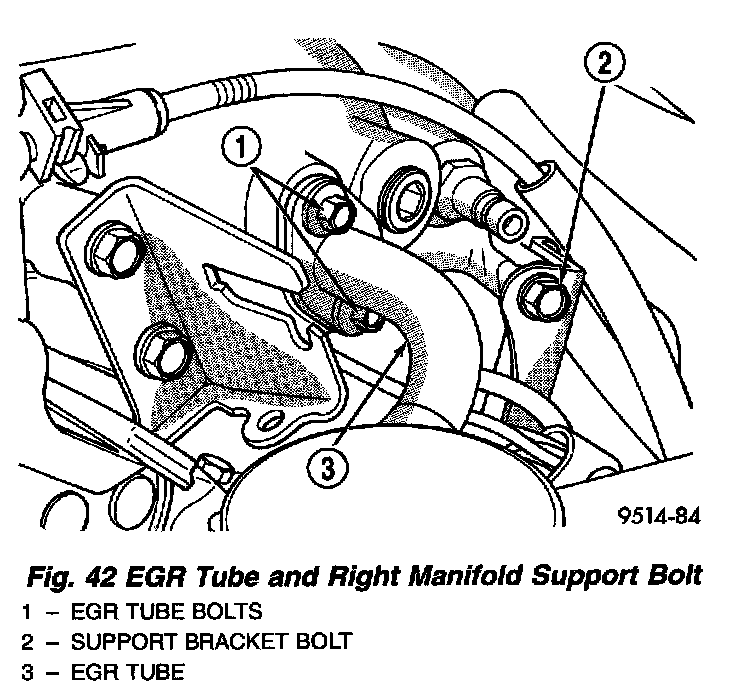 13. Remove EGR tube from intake manifold and discard gasket (Fig. 42).