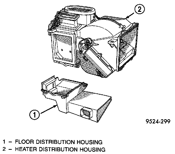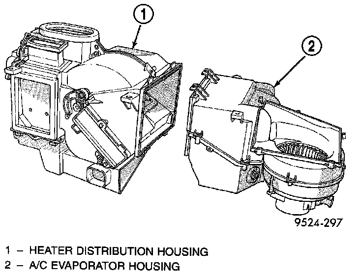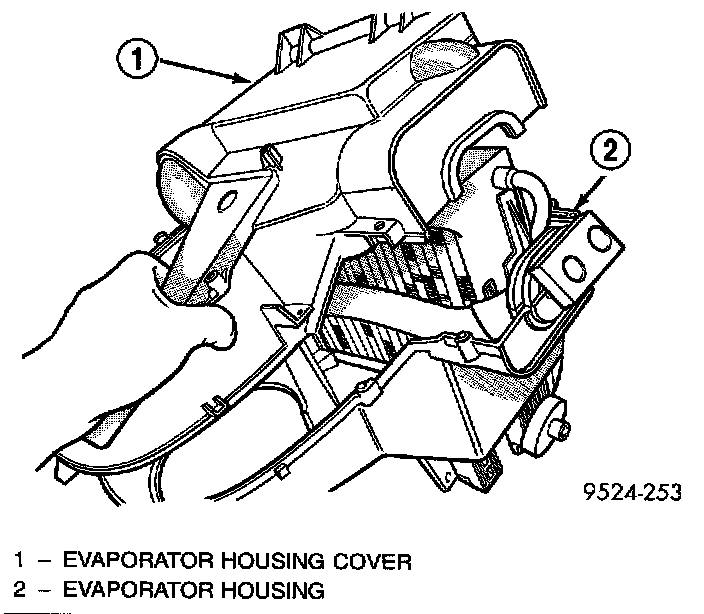 17. Remove clips retaining evaporator housing to heater/distribution housing.
