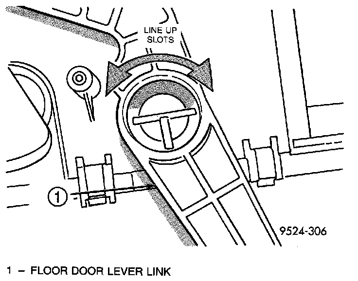 29. Turn floor door lever link until it aligns with slots cut into it. Remove floor door lever link.