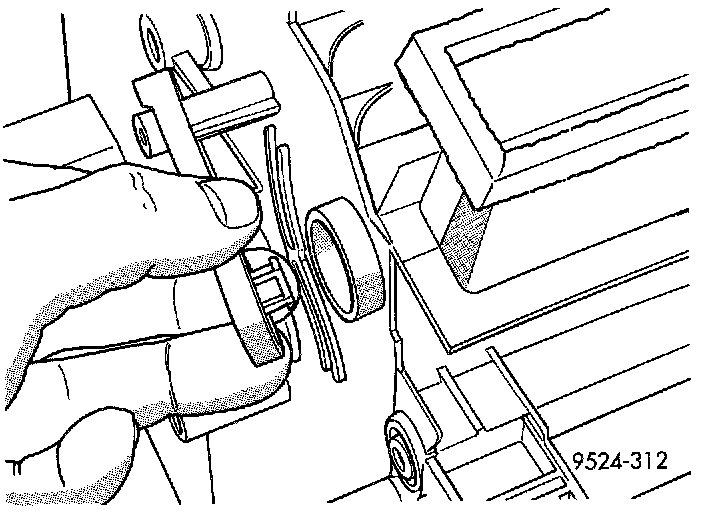 38. Depress retaining clip at temperature control door, remove temperature control door.