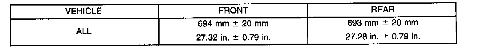 The wheel alignment is to be checked and all alignment adjustments made with the vehicle at its required curb height specification.Vehicle height is to be checked with the vehicle on a flat, level surface, preferably a vehicle alignment rack. The tires are to be inflated to the recommended pressure. All tires are to be the same size as standard equipment. Vehicle height is checked with the fuel tank full of fuel, and no passenger or luggage compartment load.