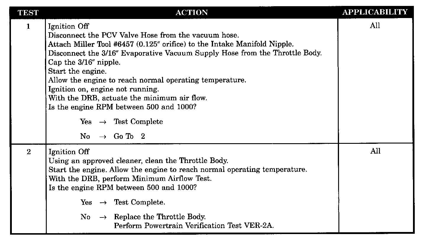 CHECKING THE MINIMUM IDLE AIR FLOW