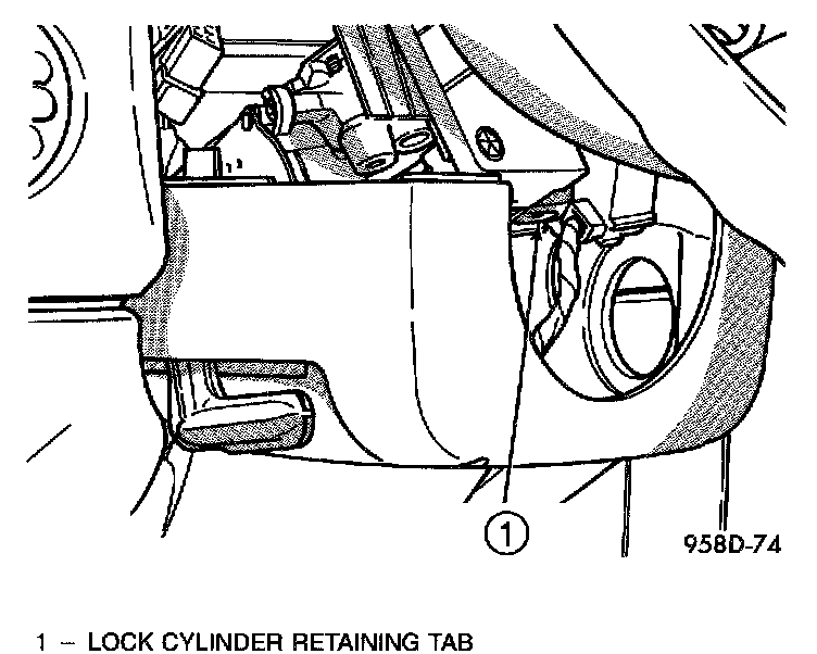 1. Install key in lock cylinder. Turn key to run position (retaining tab on lock cylinder can be depressed).