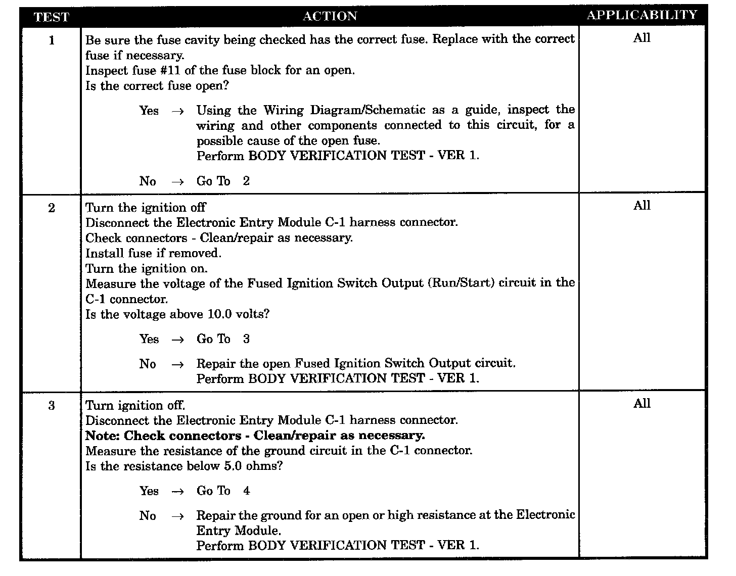 NO RESPONSE FROM ELECTRONIC ENTRY MODULE