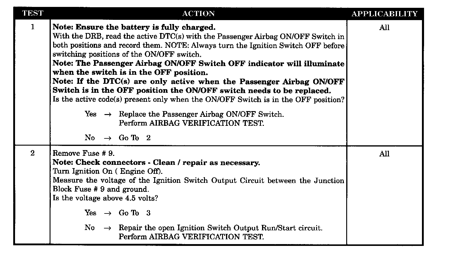 - DTC active with PAB in OFF position only
