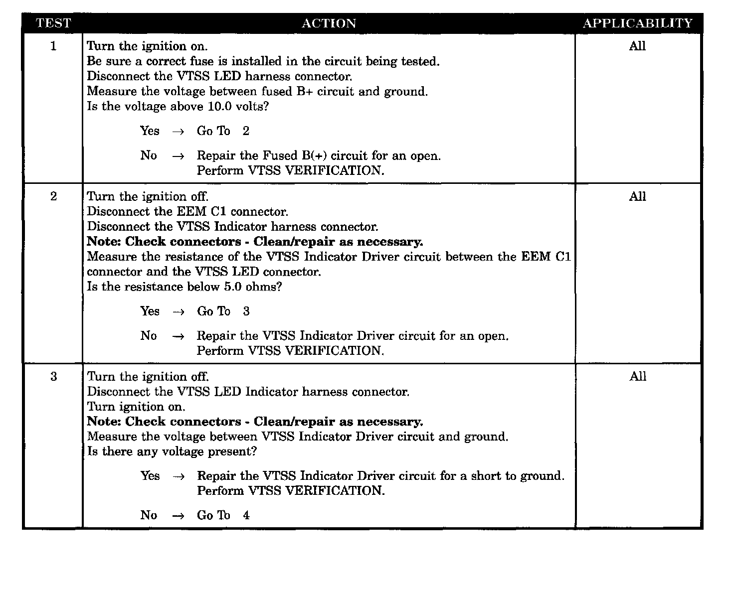 VTSS INDICATOR LAMP NOT OPERATING PROPERLY