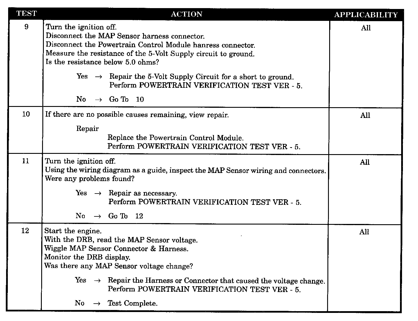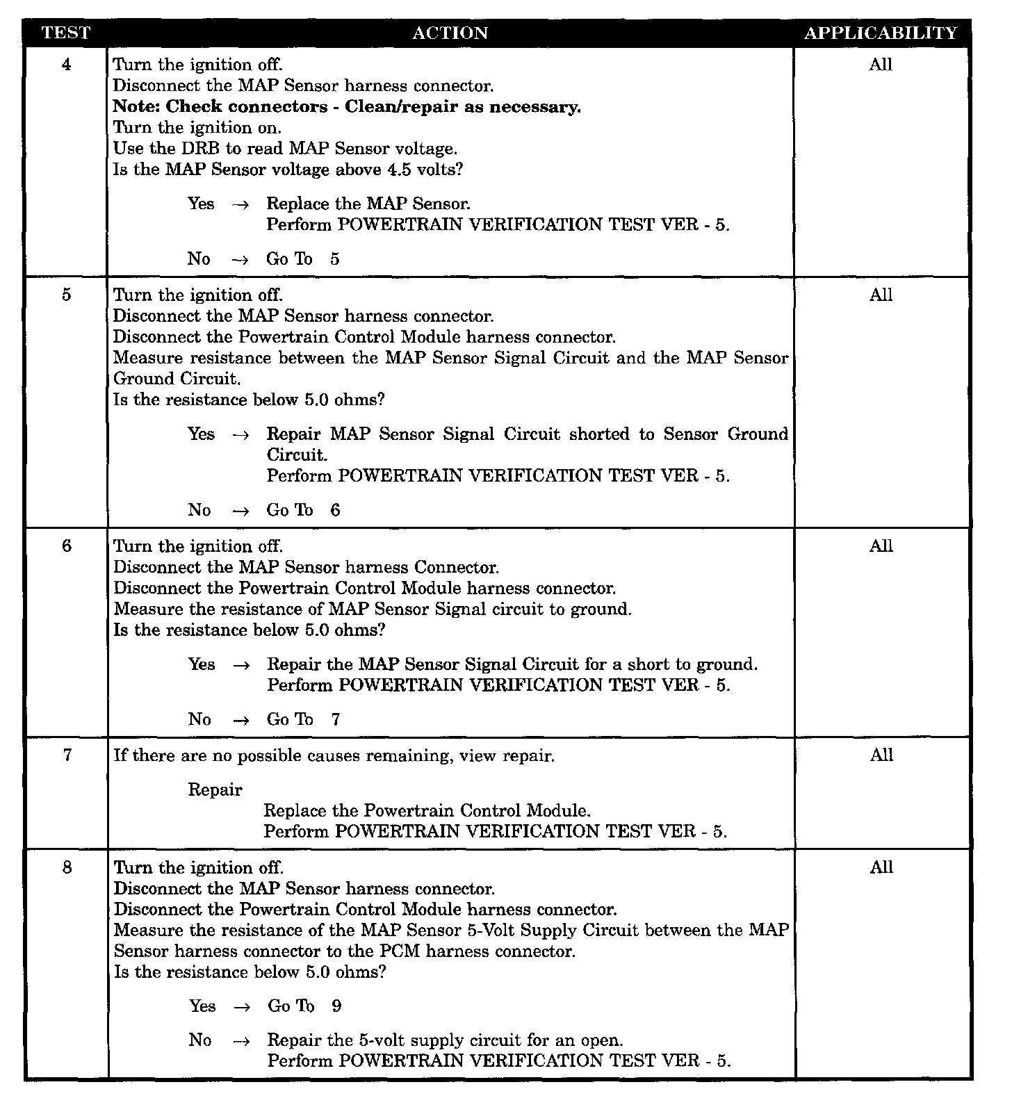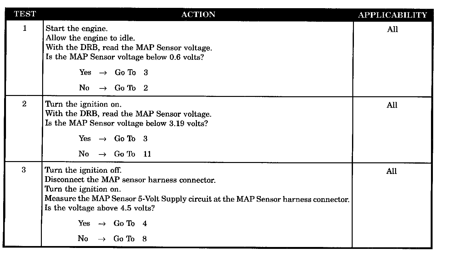 - MAP sensor signal circuit shorted to sensor ground circuit