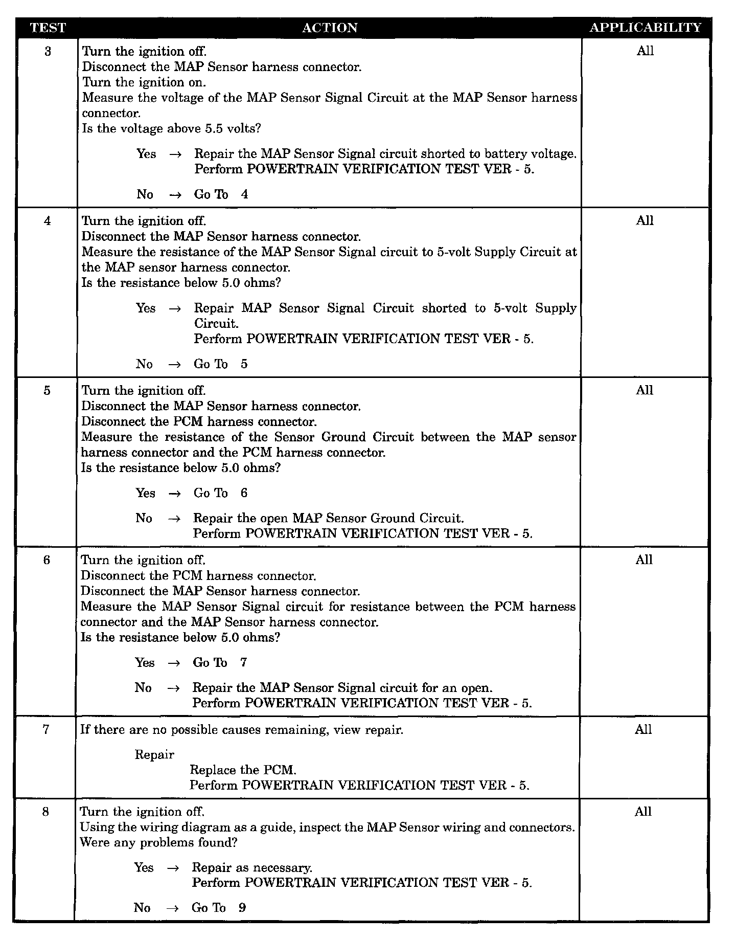 - MAP sensor signal circuit shorted to 5 volt supply circuit