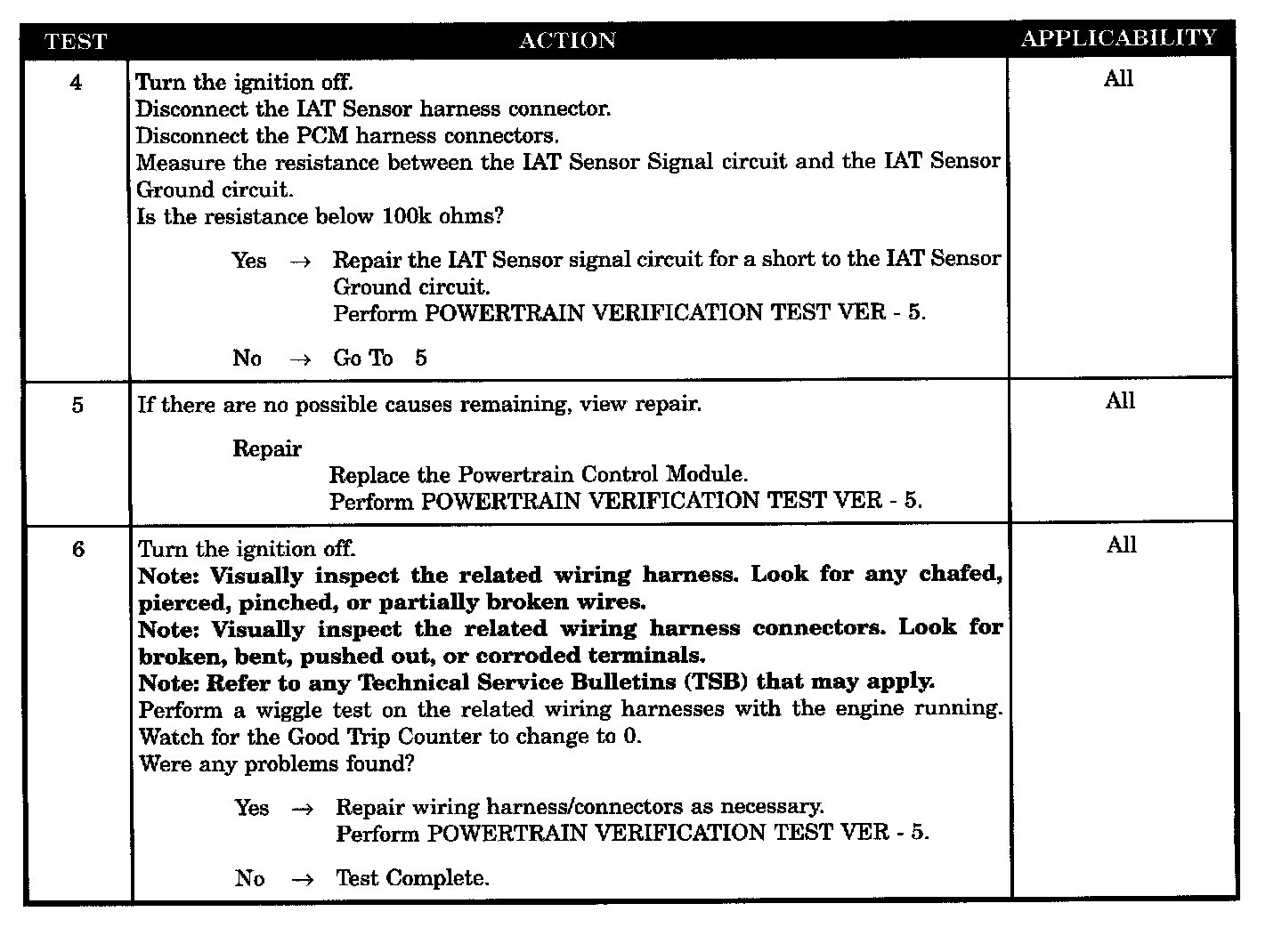 - IAT sensor signal circuit shorted to the sensor ground circuit