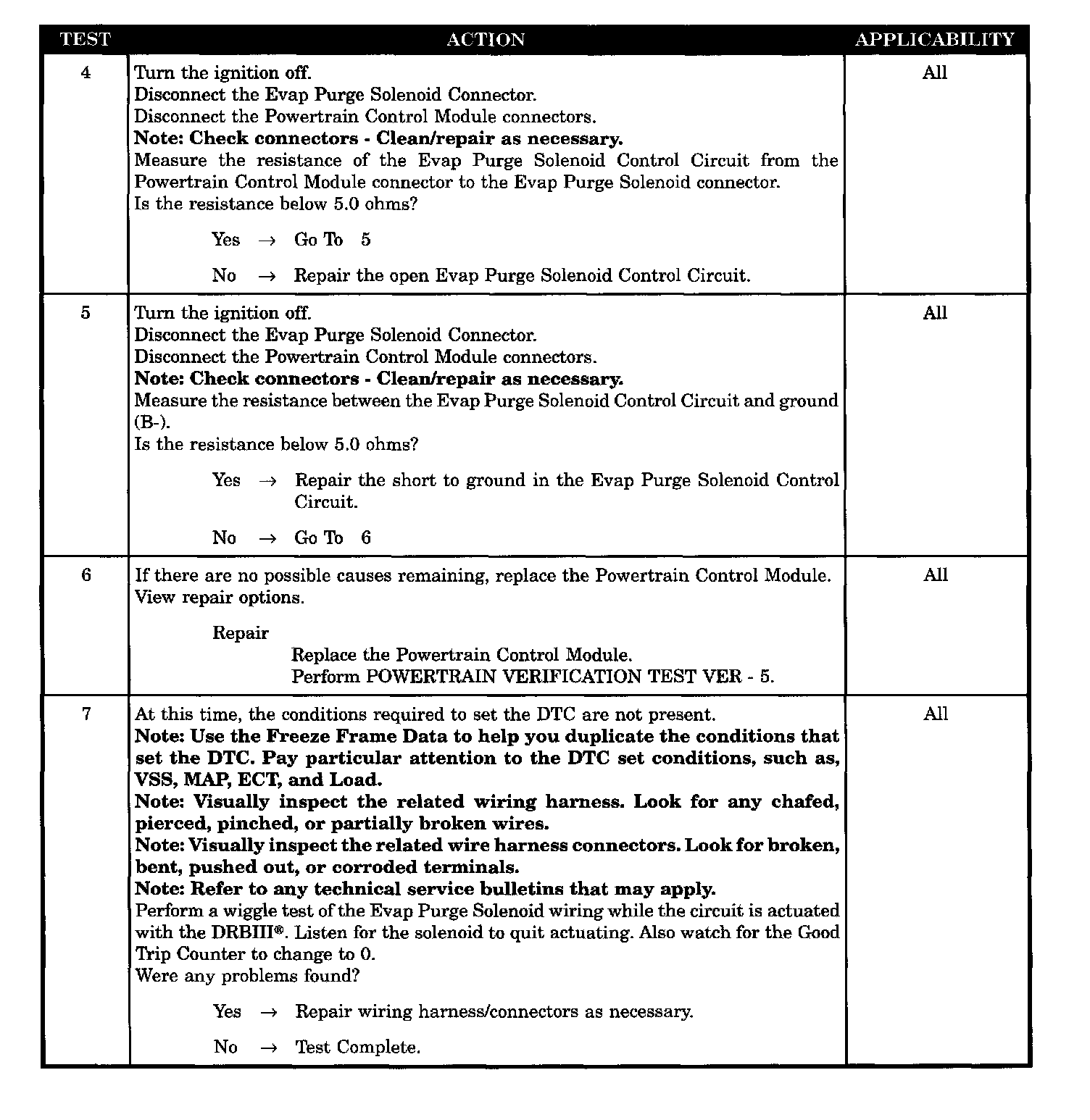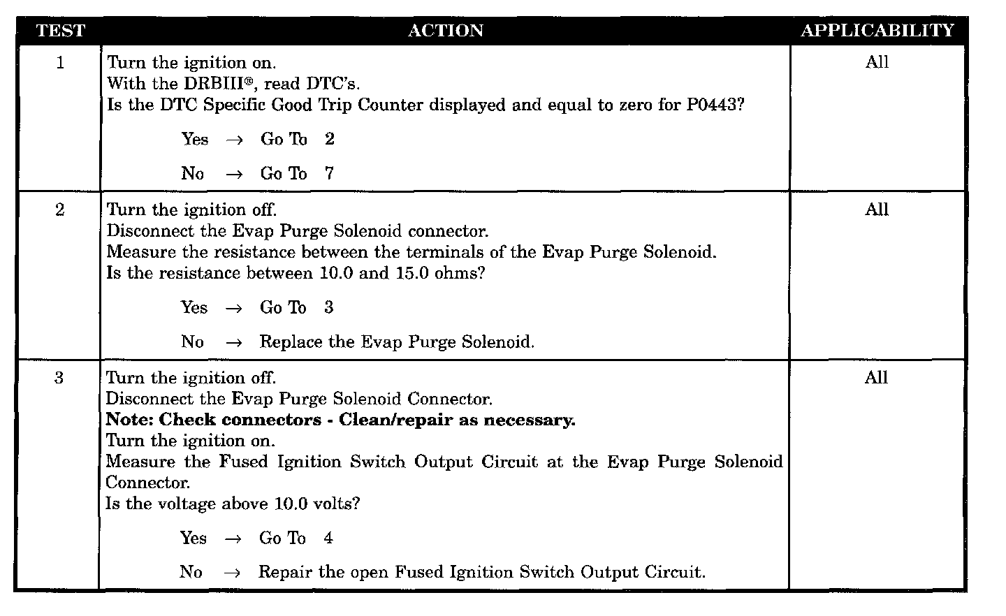 P0443 - EVAP PURGE SOLENOID CIRCUIT