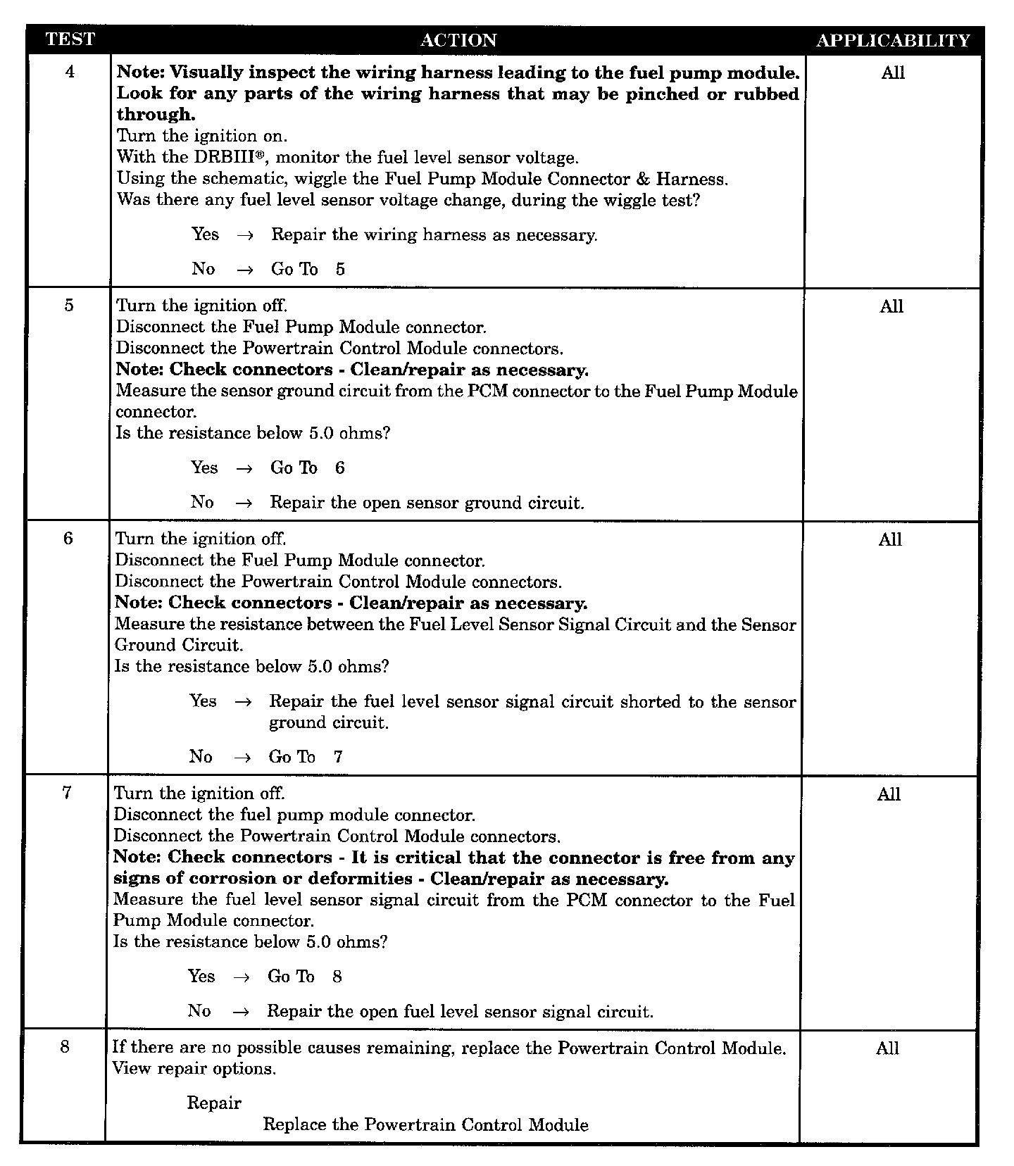 - Fuel level sensor signal circuit shorted to sensor ground circuit