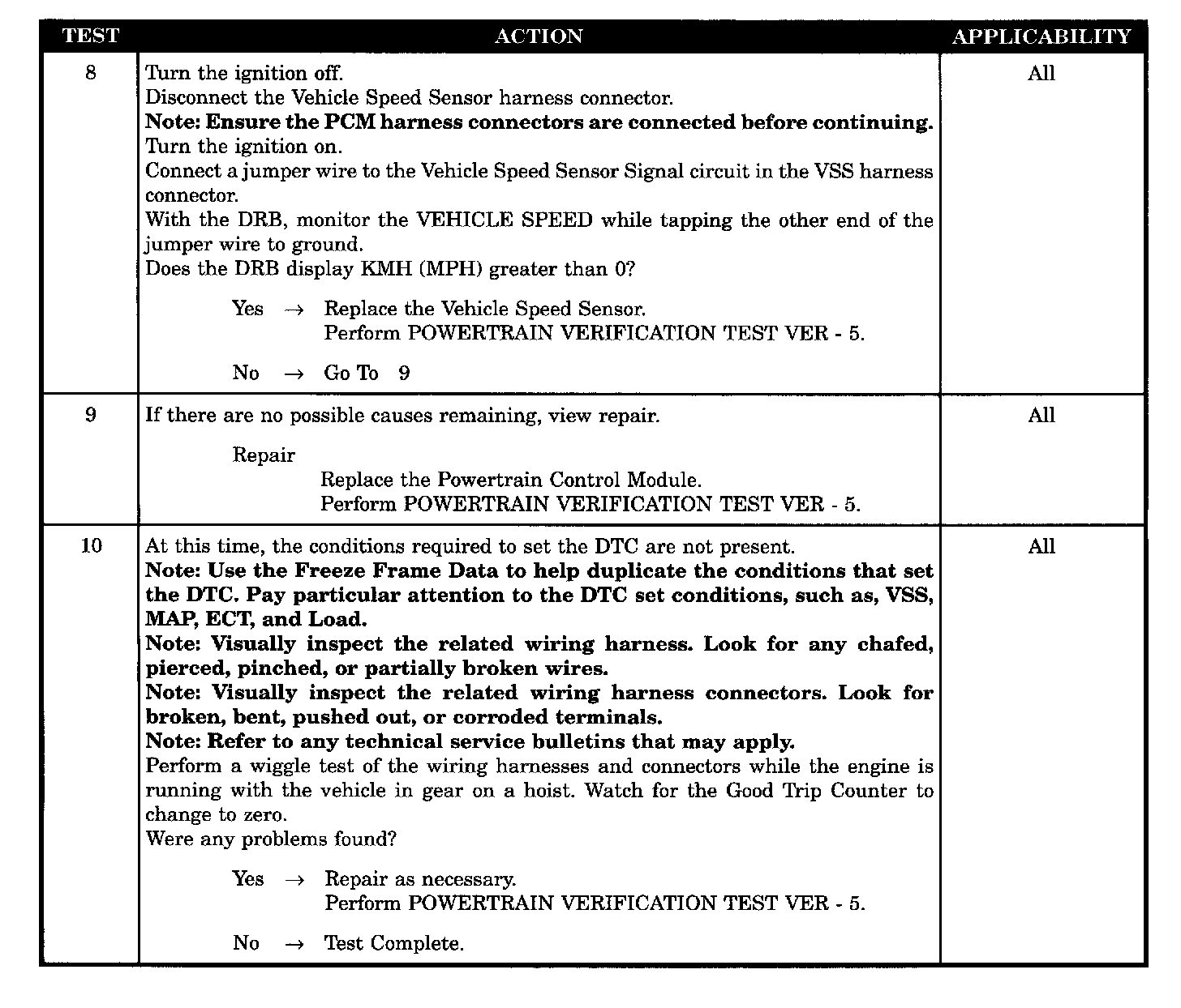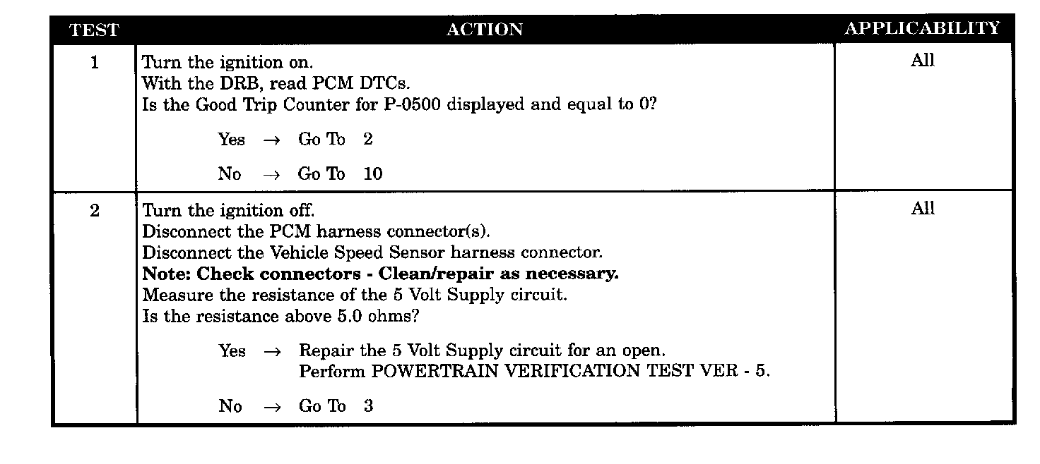 P0500 - NO VEHICLE SPEED SENSOR SIGNAL