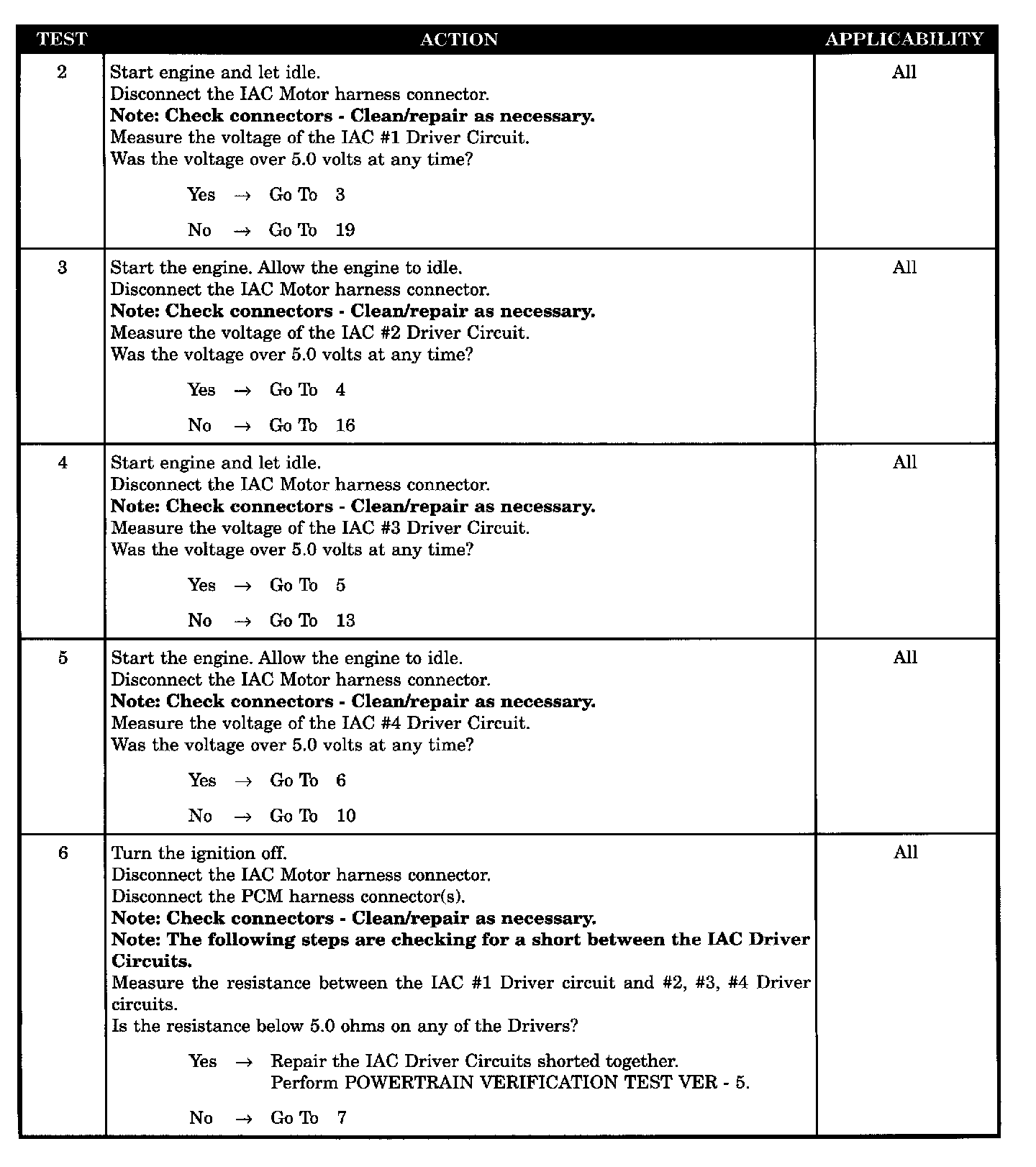 - IAC # 1 driver circuit shorted to # 2, # 3, or # 4