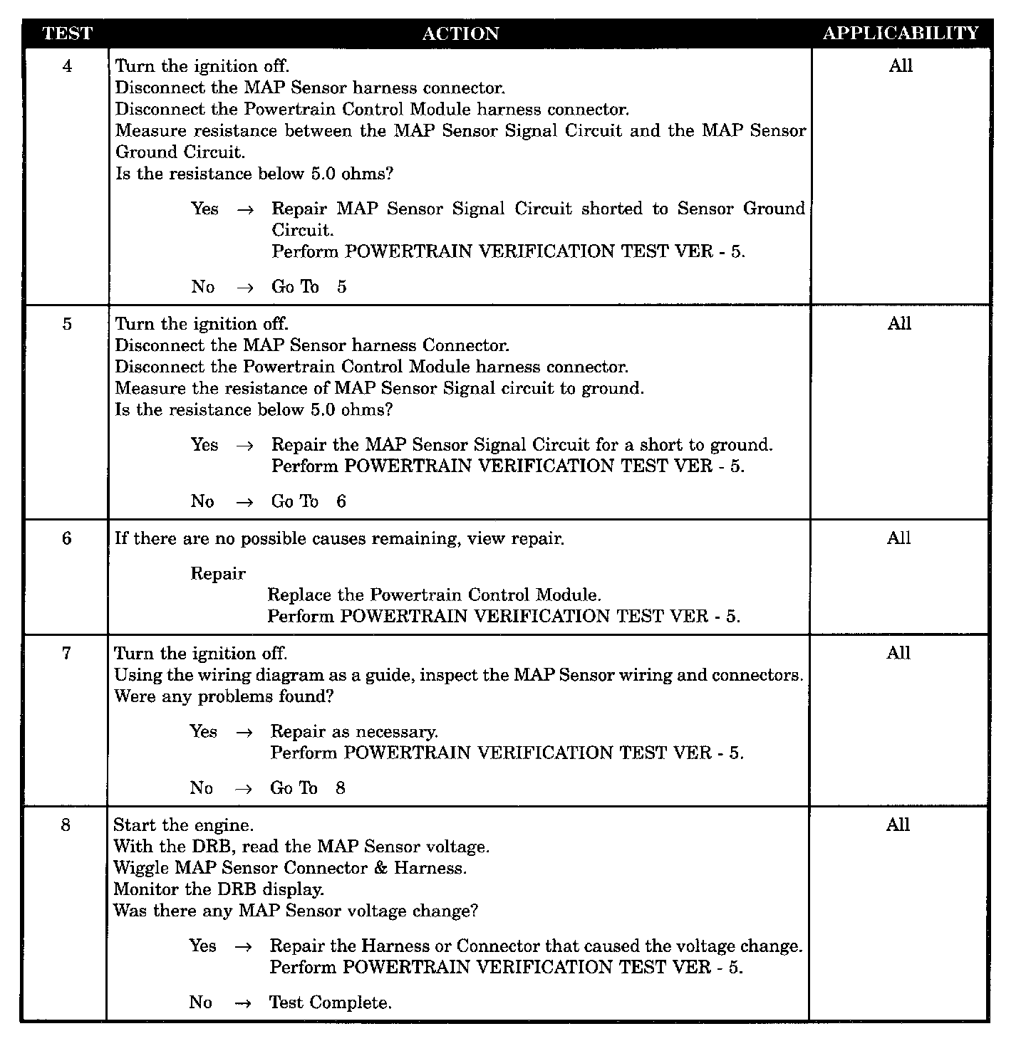 - MAP sensor signal circuit shorted to sensor ground circuit