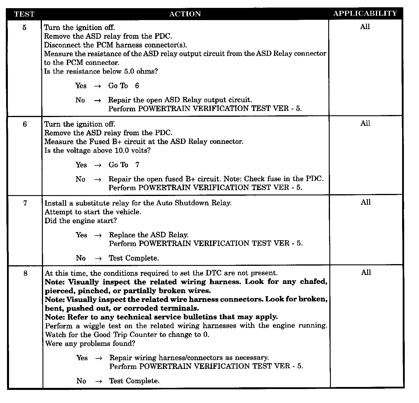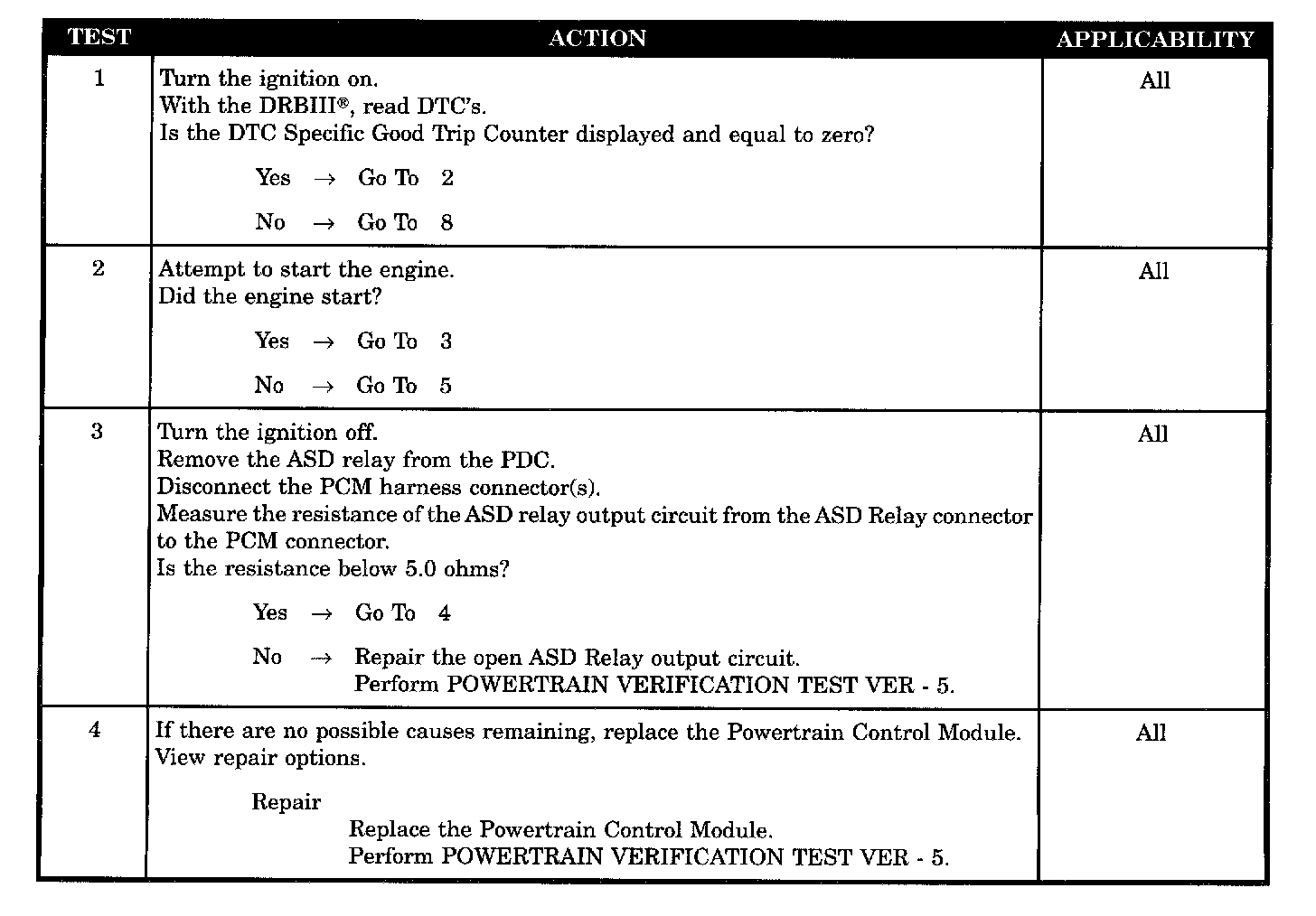 No voltage sensed at the PCM when the ASD relay is energized.