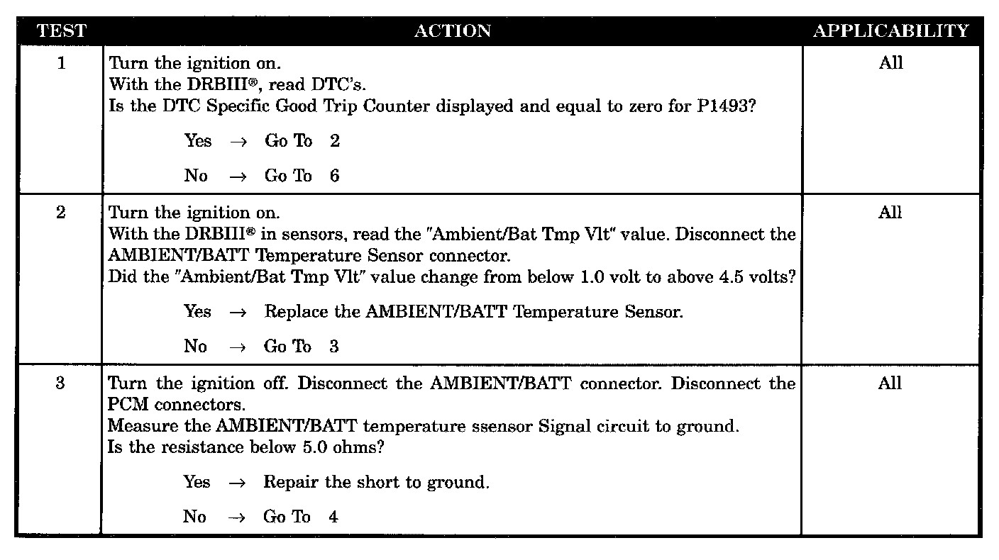 P1493 - AMBIENT/BATTERY TEMPERATURE SENSOR VOLTS TOO LOW