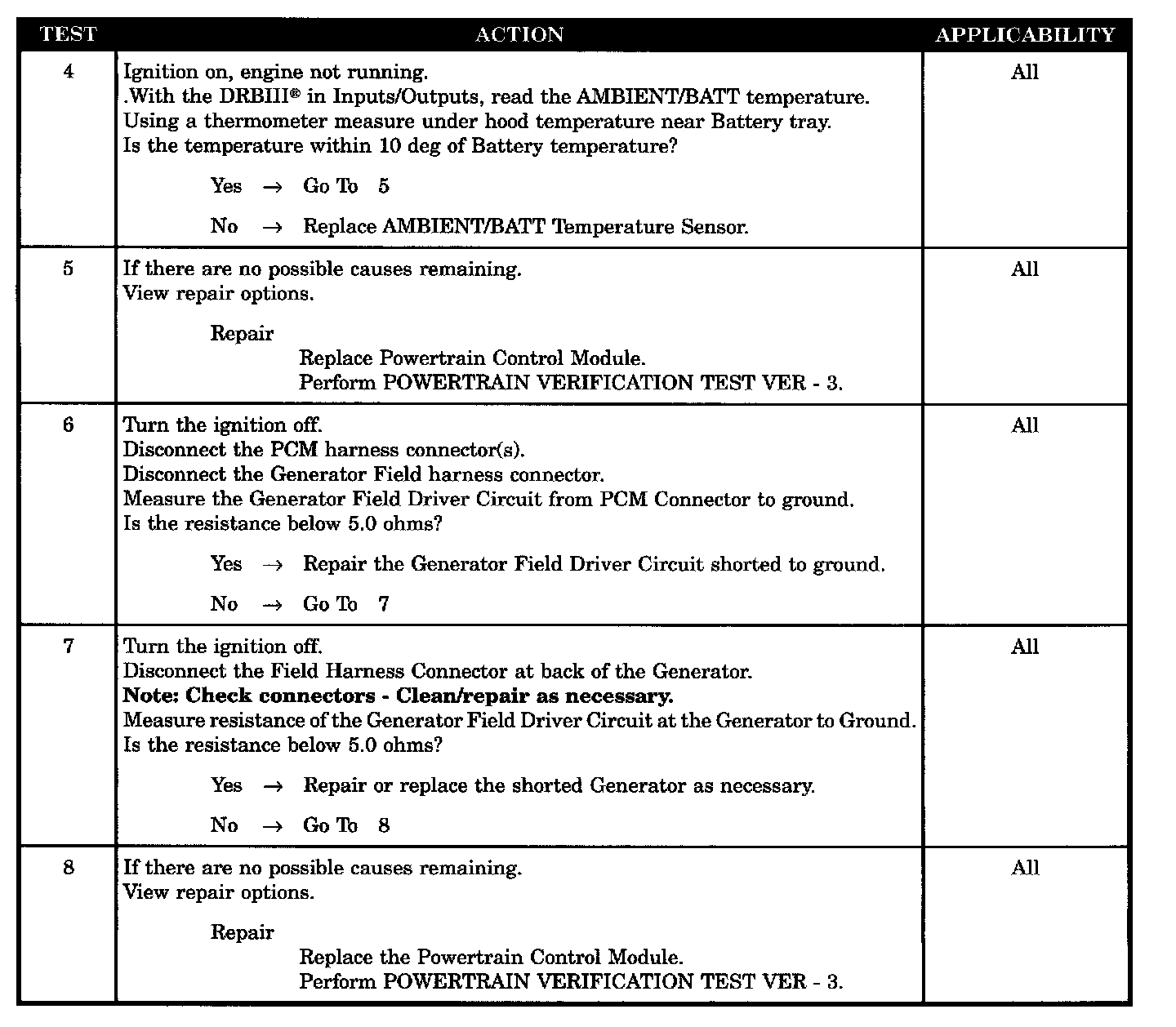 - Generator field driver circuit shorted to ground