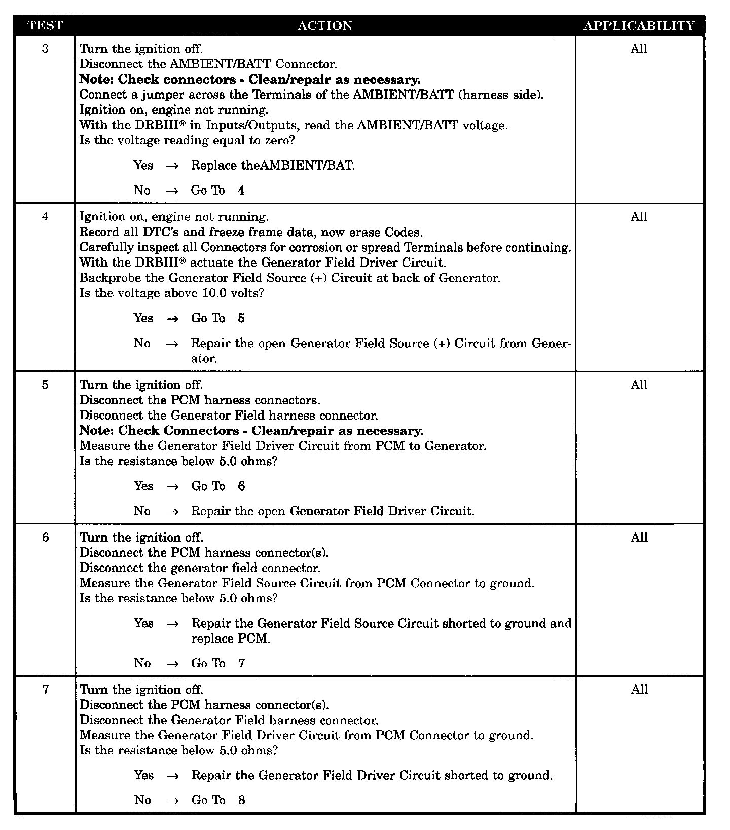 - Generator field driver circuit shorted to ground