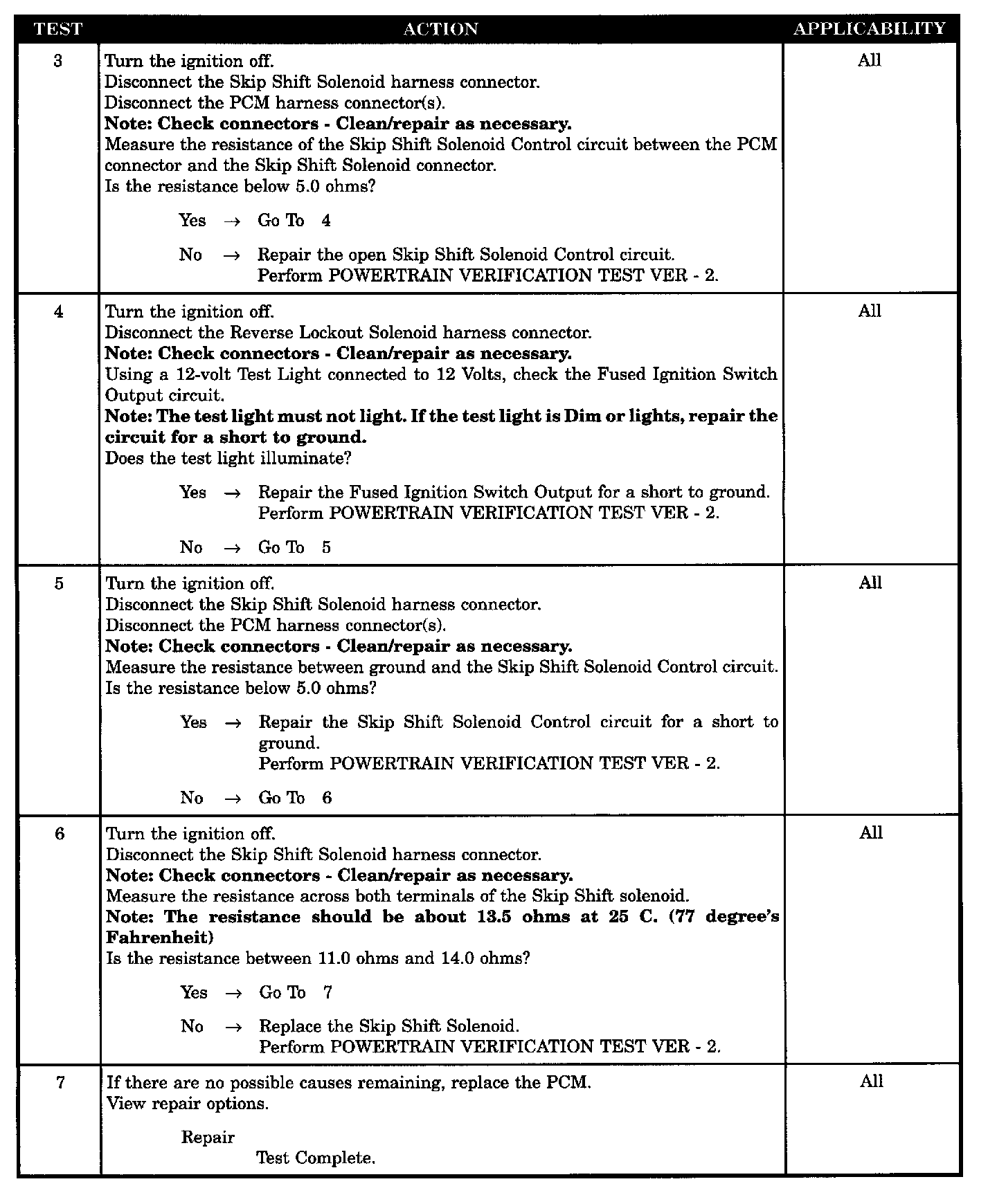 - Skip shift solenoid control circuit short to ground