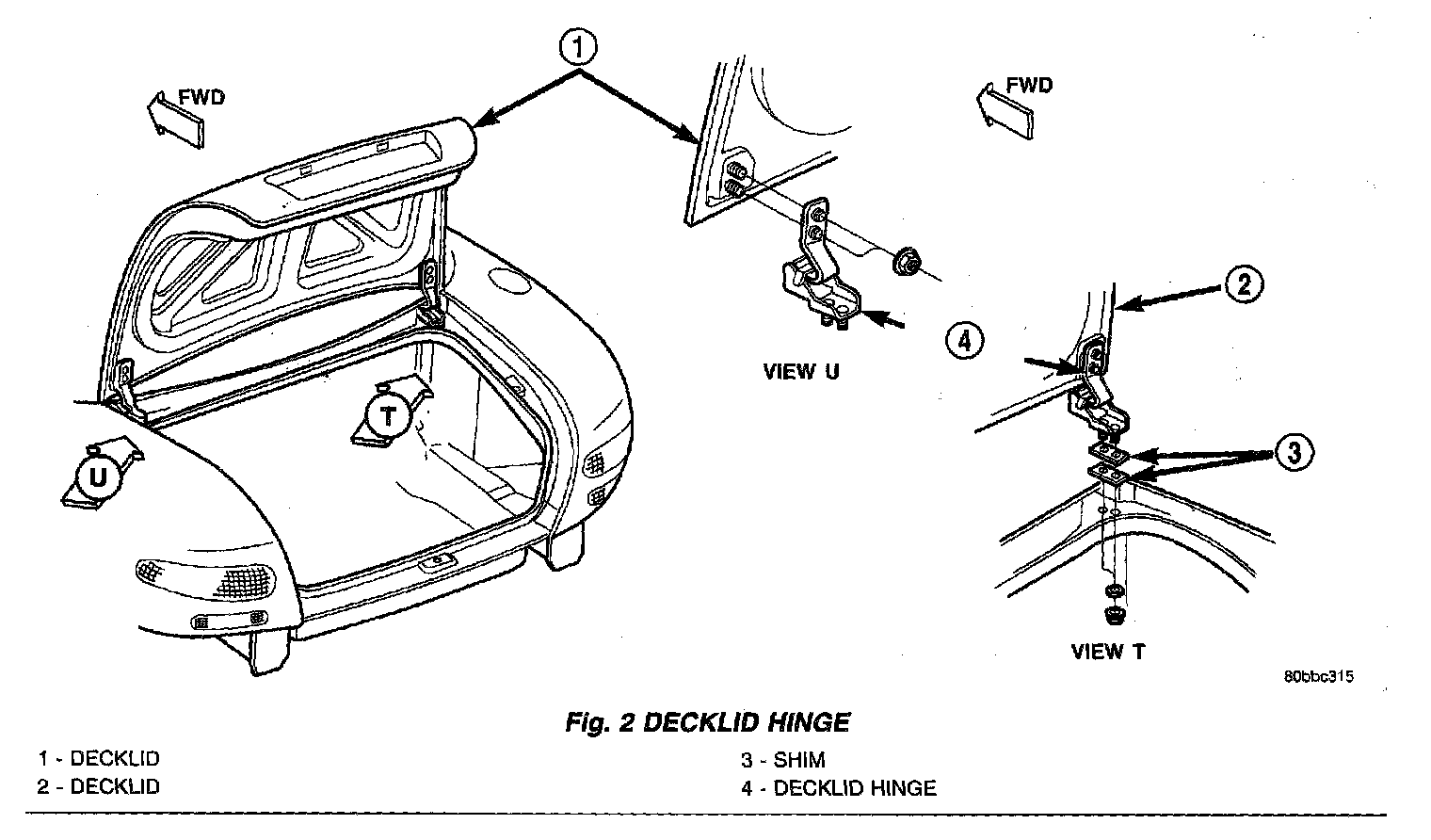 3. Using a suitable marking device, lightly mark the outline of the decklid to assist installation (Fig.2).