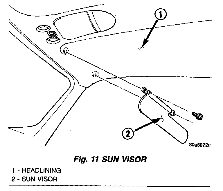 2. Remove screws attaching sun visor to roof panel (Fig. 11).