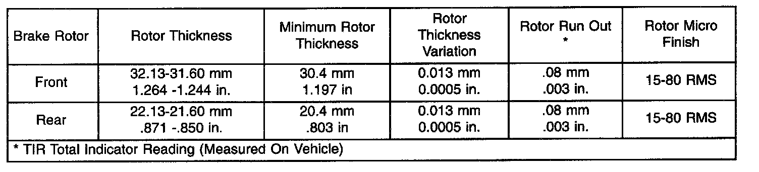 NOTE: All rotors have markings for minimum allowable thickness cast on an unmachined surface of the rotor.