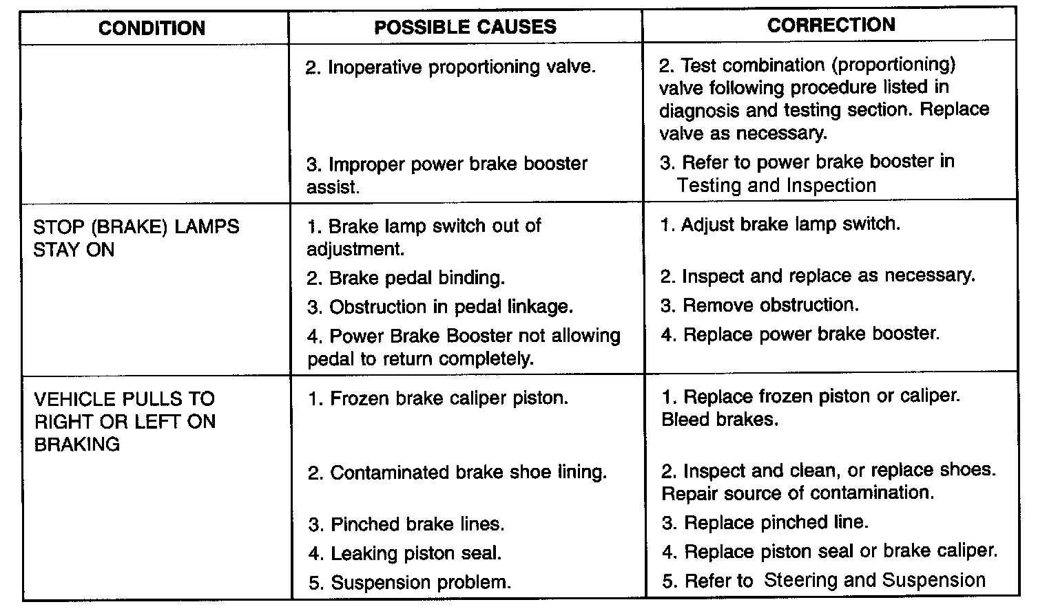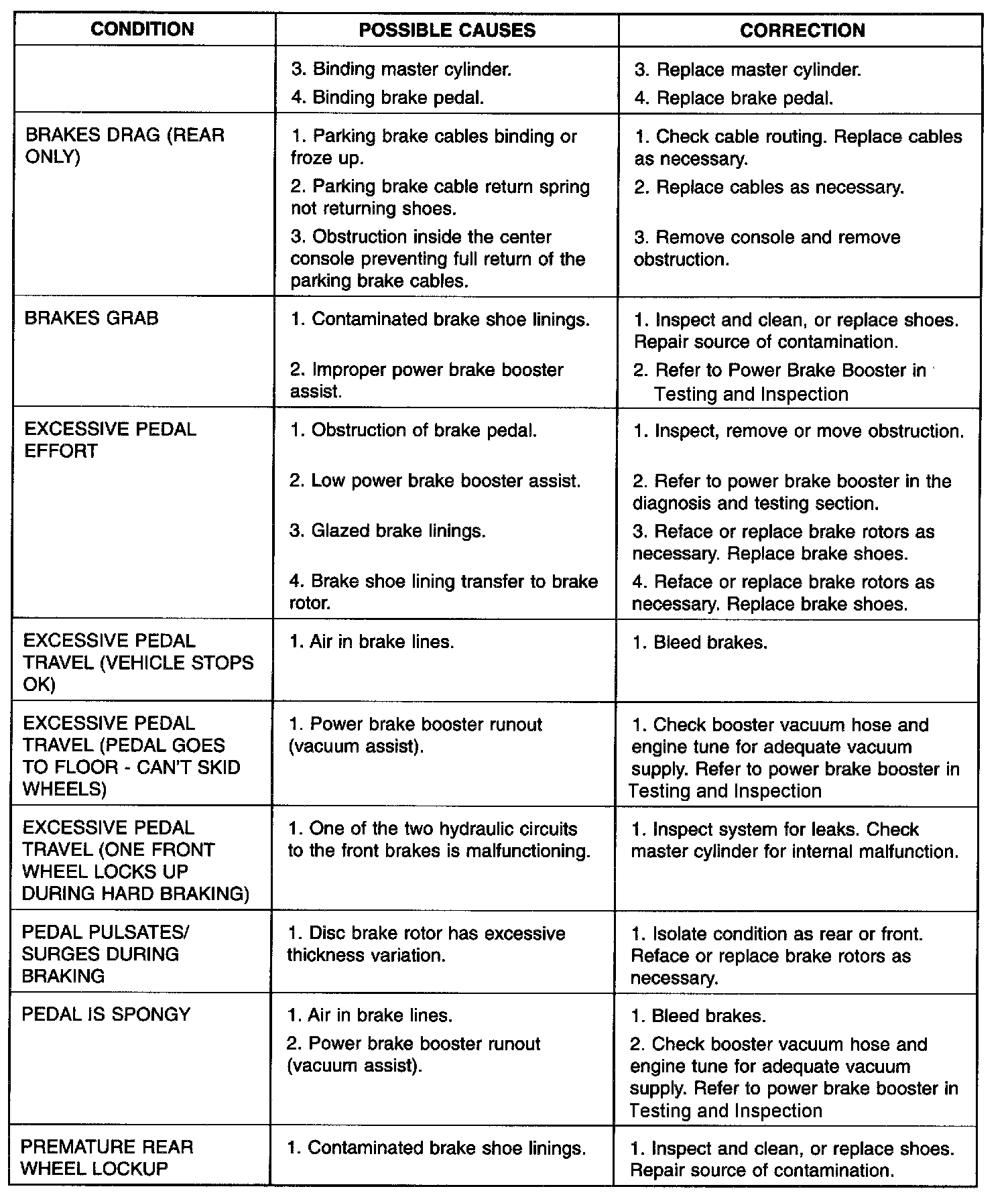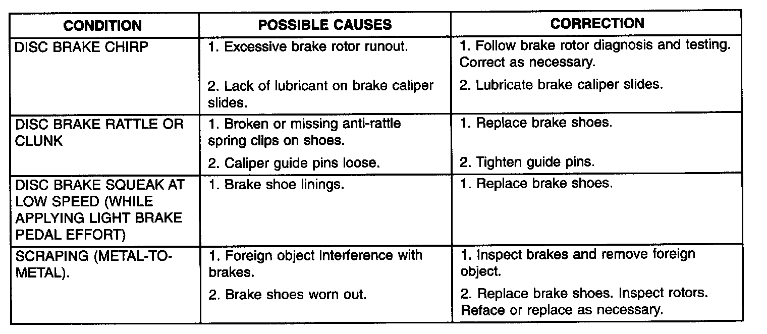 There are three diagnosis charts following that cover the RED BRAKE WARNING LAMP, BRAKE NOISE and OTHER BRAKE CONDITIONS.